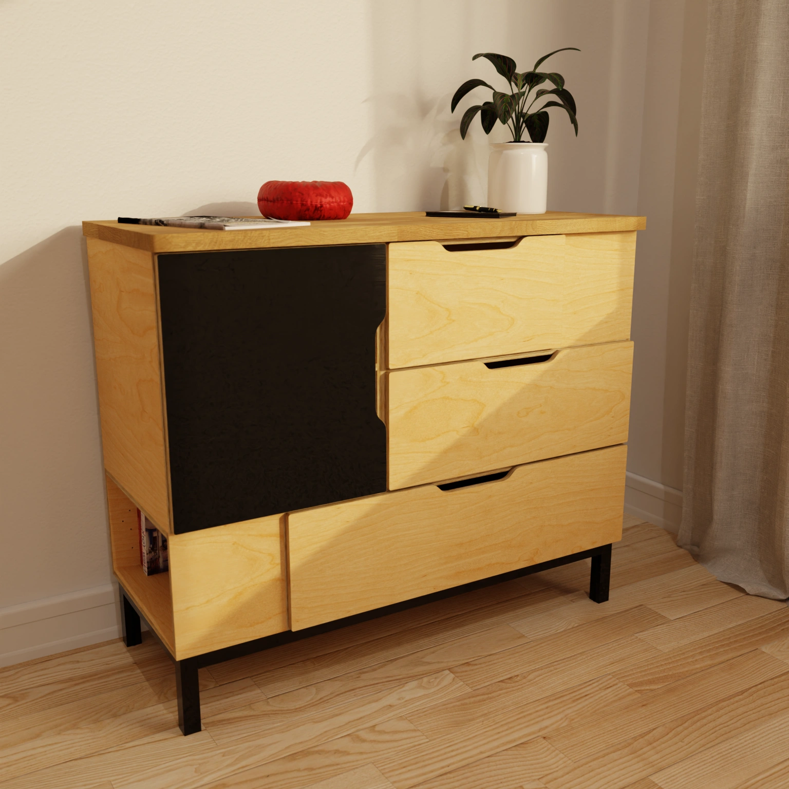 Am Anfang war Wanja: Unsere allererste Kommode mit seitlichen Fächern und Akzentfarbe.