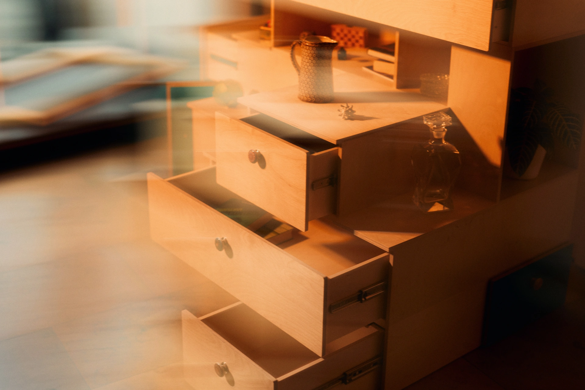 Die Module sind entweder offen – wie ein Regal – oder haben eine Tür oder Schubladen. Letztere lassen sich, je nach Wahl, per Push-to-Open öffnen oder sanft per Soft-Close schließen. Beim Kauf kannst du für jedes Modul entscheiden, was deinen Bedürfnissen entspricht.